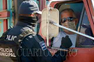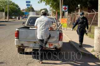 CULIACÁN, SINALOA, 22ABRIL2020.- El Gobierno Estatal y el ayuntamiento de Culiacán reforzaron las acciones preventivas al entrar la Fase 3 contra la pandemia provocada por el coronavirus (Covid-19) para evitar que el sistema de salud colapse. Elementos policiacos y de tránsito municipal reforzaron los filtros sanitarios en toda la ciudad para recomendar a los automovilistas que solo pueden salir para actividades indispensables. También invitaron a los automovilistas a viajar solos y en caso de ir una segunda persona, tendrá que ocupar el asiento trasero o viajar en la caja de la camioneta. Sinaloa, y en especial el municipio de Culiacán, ocupa los primeros lugares en contagios y muertes por coronavirus. FOTO: JUAN CARLOS CRUZ /CUARTOSCURO.COM