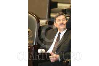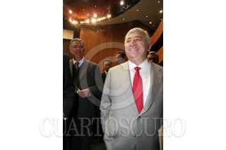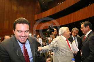 MEXICO D.F 09FEBRERO2006.- El coordinador de la fracción parlamentaria del PRI, Emilio Chuayffet, saluda a Federico Döring, diputado del PAN, durante la sesión ordinaria en la Cámara de Diputados. FOTO: Diego Gallegos/CUARTOSCURO.COM