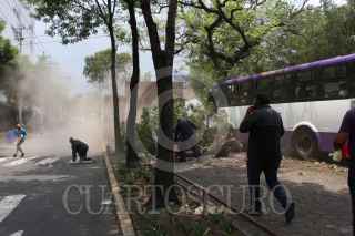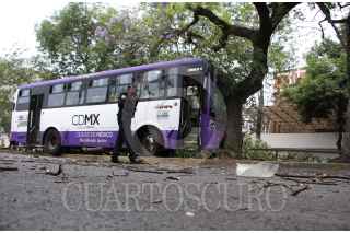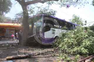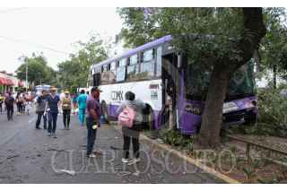 Un autobús de transporte público chocó contra un árbol frente al Hospital Gea González.