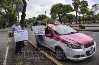 CIUDAD DE MÉXICO, 23ABRIL2020.- Un grupo de taxistas que pertenecen a la Unión de Taxis del Centro (UTC) se manifestaron sobre la avenida Fray Servando Teresa de Mier, para exigir a las autoridades se les otorgue un apoyo económico mientras permanece la fase 3 por pandemia coronavirus (Covid-19). FOTO: MARIO JASSO /CUARTOSCURO.COM