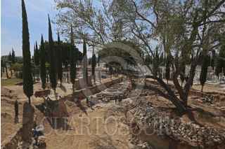 GUADALAJARA, JALISCO, 23ABRIL2020.- El pasado miércoles el Gobierno del estado informo que quedó instalada la Comisión Interinstitucional de Manejo de Cadáveres por Covid-19, por lo que el Ayuntamiento de Guadalajara comenzó la construcción de 700 fosas en el Panteón de Mezquitán, para recibir cuerpos de personas victimas de coronavirus (Covid-19). FOTO: FERNANDO CARRANZA GARCIA / CUARTOSCURO.COM