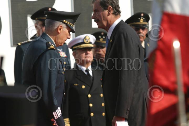 MÈXICO, D.F. 09FEBRERO2006.- Ricardo Clemente Vega, Secretario de la Defensa y el presidente Vicente Fox Quesada durante la ceremonia de la marcha de la lealtad en el castillo de Chapultepec. FOTO:Miriam Sánchez/CUARTOSCURO.COM