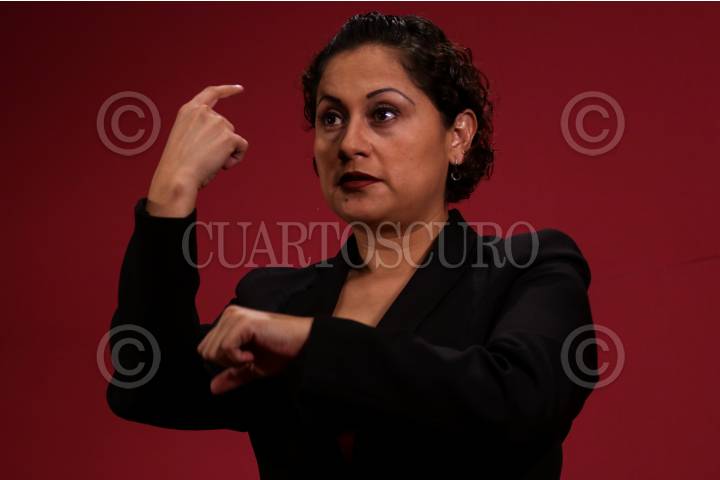 CIUDAD DE MÉXICO, 24ABRIL2020.- Durante un par de horas a la semana ninguna palabra, más que la del presidente Andrés Manuel López Obrador, suena en la sala continúo al Salón Tesorería. Ubicada justo en medio de una zona de cocina y la magno sala en donde todas las mañanas el jefe del ejecutivo encabeza su conferencia de prensa matutina, se encuentra el equipo de comunicación no verbal del presidente, las y los interpretes para personas sordomudas. Quienes se turnan cada 20 minutos para dar sentido a lo que dice el presidente, con las manos. Según datos del Instituto Nacional de Estadística, Geografía e Informática (INEGI) en 2016 se tenían contabilizadas a 5 millones 739 mil 270 personas con discapacidad, de las cuales 694,451 habitantes del país padecen deficiencia auditiva, el 12 por ciento, sin embargo se estima que el 1.3 por ciento de la población padece complicaciones. Diversas iniciativas como la conmemoración del Día Internacional de la Sordera (28 de septiembre) se han creado para concientizar a las personas sobre dicha condición. En el panorama actual, las personas sordas se enfrentan a dos epidemias, por un lado la creciente ola de contagios por Covid-19 que se vive en todo el mundo y que en nuestro país ya ha cobrado la vida de 1069 personas y se han confirmado 11633 positivos. Por el otro, la falta de interpretes y de educadores integrales, así como la falta de oportunidades laborales. FOTO: GALO CAÑAS /CUARTOSCURO.COM