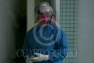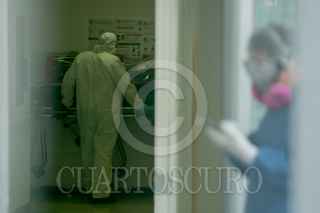 CIUDAD DE MÉXICO, 25ABRIL2020.- Pacientes con Covid-19 continúan llegando al Hospital General Balbuena para ser atendidos. Con trajes especiales y caretas los doctores atienden a los nuevos casos, mientras que otros nosocomios ya registran su máxima capacidad. Nuestro país ha confirmado 12,872 casos positivos y mil 221 muertes por el padecimiento surgido en China. FOTO: GALO CAÑAS /CUARTOSCURO.COM