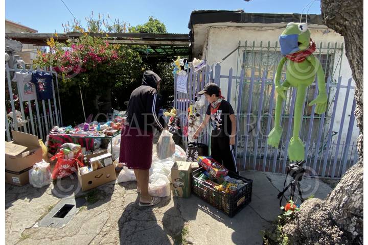 TIJUANA, BAJA CALIFORNIA, 25ABRIL2020.- Un niño tomó la decisión de ayudar a su familia intercambiando sus juguetes por comida, esto tras la difícil situación económica que enfrentan debido su mamá dejó de trabajar por la cuarentena. Un gran cantidad de personas de ambos lados de la frontera acudieron a lo largo día para llevar despensa después de que su historia se hiciera viral en redes sociales. El Niño de nombre Alexis Ortíz vive con su madre, una hermana y sus dos buenos en la avenida Televisión de la colonia Juárez. FOTO: OMAR MARTÍNEZ /CUARTOSCURO.COM
