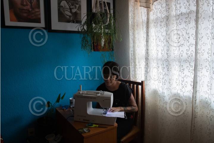 CIUDAD DE MÉXICO, 26ABRIL2020.- Tania Valerio, convirtió su cuarentena en casa una oportunidad para ayudar, fabricando cubrebocas para personas en situación vulnerable que no tienen la posibilidad de adquirirlos y así no quedarse expuestos al contagio del virus COVID-19. A través del proyecto Yollo de Corazón, Tania, repartidores y donadores, se unen para la entrega y fabricación de cubre bocas de tela y polipropileno de cuatro capas. La ayuda no es centralizada, desde que se inició la fabricación han entregado unidades al Estado de México, y a colonias de toda la Ciudad. “Apoyamos a quién nos escribe, sea de donde sea”, señaló Tania. La joven expresó que el fin del proyecto ante la emergencia sanitaria de la pandemia COVID-19 es que “nadie se quede sin un cubrebocas”. Las personas que quieran donar para la fabricación de los cubrebocas pueden contactarse en la cuenta de instagram @yollodecorazon, donde se encuentra la cuenta de banco y también el proceso para donar materiales. FOTO: ANDREA MURCIA /CUARTOSCURO.COM