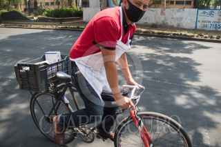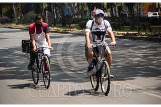 CIUDAD DE MEXICO. 26ABRIL2020.- Hombres jóvenes repartidores de comida preparada o bien para restaurantes, laboran normalmente en la Capital. Policías en las transitadas avenidas, de esta Ciudad. FOTO: VICTORIA VALTIERRA/CUARTOSCURO.COM/CUARTOSCURO.COM
