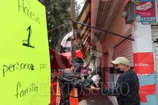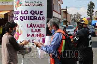CIUDAD DE MÉXICO, 26ABRIL2020.- En los tianguis de la alcaldía Iztapalapa se colocaron medidas sanitarias para que los capitalinos se laven las manos, usen gel antibacterial y procuren entrar sólo una persona por familia. A pesar de haberse decretado la Fase 3 de la pandemia del Coronavirus, cientos de personas continúan saliendo a lugares concurridos en la capital. FOTO: GRACIELA LÓPEZ /CUARTOSCURO.COM