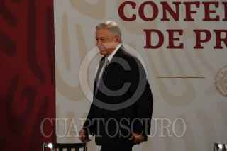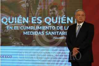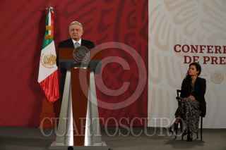 CIUDAD DE MÉXICO, 27ABRIL2020.- Andrés Manuel López Obrador, Presidente de México, encabezó la conferencia matutina en Palacio Nacional. Lo acompañaron Luis María Alcalde Luján, secretaria del Trabajo y Previsión Social, y Ricardo Sheffield Padilla, titular de Profeco. FOTO: MOISÉS PABLO/CUARTOSCURO.COM
