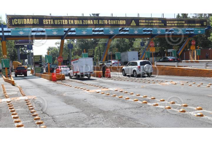 CIUDAD DE MÉXICO, 27ABRIL2020.- Elementos de vigilancia de la Central de Abastos revisan que los capitalinos usen cubrebocas al entrar a las instalaciones, así mismo la fachada de la entrada principal tiene letreros de alerta después de haberse implementado los protocolos sanitarios de la Fase 3 de la pandemia del Coronavirus. FOTO: GRACIELA LÓPEZ /CUARTOSCURO.COM