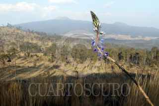 MILPA ALTA, CIUDAD DE MÉXICO, 28ABRIL2020.- Los bosques que cubren la sierra del sur de esta delegación contienen una gran diversidad biológica que se ve amenazada por la apertura de terrenos a la agricultura de temporal y la ganadería. Los volcanes escudos de gran extensión (como el Chichinautzin o el Tláloc) o los perfectos conos de ceniza ( como La Comalera o San Bartolo) que se elevan por encima de los 3 mil 250 metros del nivel del mar, sirven de mirador hacia paisajes de inigualable belleza. Al recorrer las laderas y cráteres se observa la fauna nativa, como aves, insectos o lagartos pequeños como tlaconetes, a pesar de que la zona muestra la gravedad de la deforestación. FOTO: MARGARITO PÉREZ RETANA /CUARTOSCURO.COM