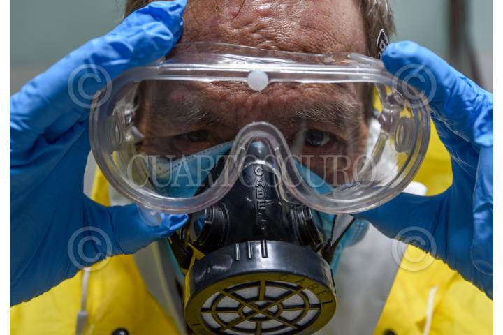 El número de defunciones en el Estado de México por COVID-19 hasta el momento es de 122 personas en el territorio estatal, ante esto las funerarias toman medidas de seguridad para poder manejar los cuerpos que tienen que trasladar e incinerar o enterrar, utilizando dos trajes Tyvek, goggles, 2 pares de guantes, calzado especial, mascarillas, y sanitizantes, como es el caso de la Funeraria Jimenez ubicada en el centro de Toluca, hasta el momento ellos solamente han recibido dos cuerpos infectados con este virus, pero deben de tratar todos los restos con medidas de precaución. FOTO: CRISANTA ESPINOSA AGUILAR /CUARTOSCURO.COM