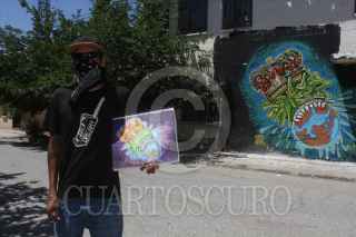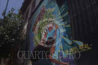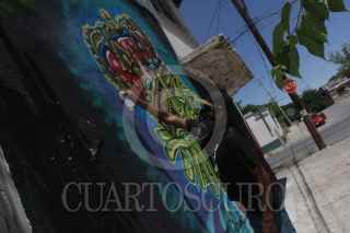 CIUDAD DE JUÁREZ, CHIHUAHUA, 28ABRIL2020.- El artista urbano Jorge Alejandro Pérez Mendoza realizó un mural por la situación que se está viviendo en nuestra localidad sobre la pandemia provocada por el Covid-19, comento que esta pandemia se está comiendo al mundo. El artista plástico plasmó su pintura en los cruces 16 de Septiembre y Anáhuac, el planeta fue dibujado al revés porque así lo ha puesto la pandemia y agregó que el mundo, en este mural, es mordido por el virus desde la parte donde se encuentra Asia, lugar donde surgió esta enfermedad. El día de ayer el artista empezó a plasmar su obra aproximadamente a las 8 de la mañana y concluyó cercas de las 11 de la mañana del mismo día. FOTO: NACHO RUIZ/CUARTOSCURO.COM