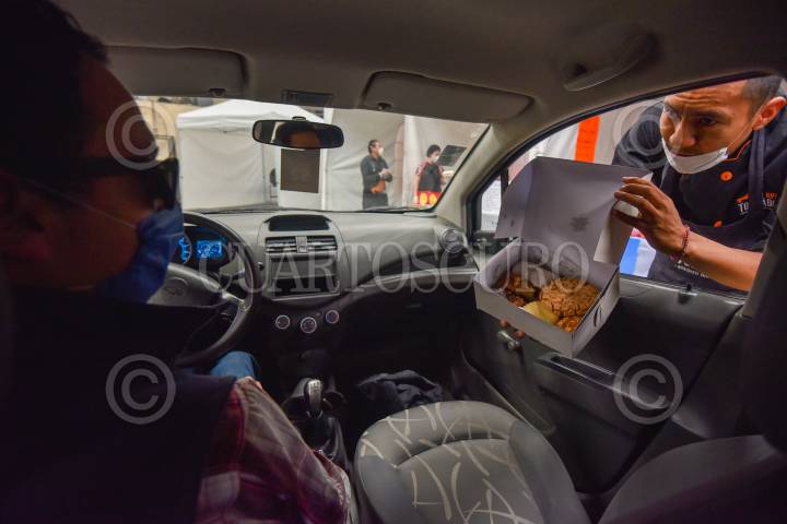 Ante la contingencia sanitaria por COVID-19 surge una nueva modalidad de hacer compras, es el “Mercadito Local” ubicado en el estacionamiento del restaurante denominado El Bife Toreado en donde se reúnen productores locales, los asistentes ingresan con su automóvil y sin tener que bajar pueden realizar todas sus compras, y se encuentra abierto de lunes a domingo de 11 a 5 de la tarde. FOTO: CRISANTA ESPINOSA AGUILAR /CUARTOSCURO.COM
