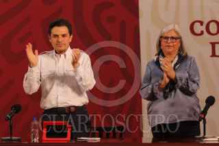CIUDAD DE MÉXICO, 28ABRIL2020.- Zoe Robledo, director del Instituto Mexicano del Seguro Social (IMSS), y Graciela Márquez, secretaria de Economía, encabezaron la conferencia de Economía en Palacio Nacional. FOTO: GRACIELA LÓPEZ /CUARTOSCURO.COM