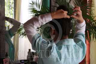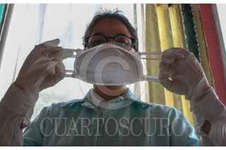 CIUDAD DE MEXICO 29ABRIL2020.- Fernanda, una enfermera del Instituto Mexicano del Seguro Social, continúa alistándose de manera cotidiana como lo hace ya hace poco más de dos años. Debido al la emergencia sanitaria ha agregando algunos elementos recomendados en la institución y por parte del gobierno, como uso de guantes, cubrebocas y lentes, para evitar la propagación de dicho virus.Tras los recientes ataques a enfermeras por presuntamente ser un foco de infección de COVID-19, Fernanda comenta que al llegar a su lugar de trabajo se cambia: lentes, cubrebocas, bata y guantes, para colocarse un traje que la cubre de pies a cabeza. Expresa que no dejará de utilizar su uniforme desde la casa ya que es algo por lo que que se esforzó durante gran parte de su vida y lo porta con orgullo en todo momento. ROGELIO MORALES /CUARTOSCURO.COM