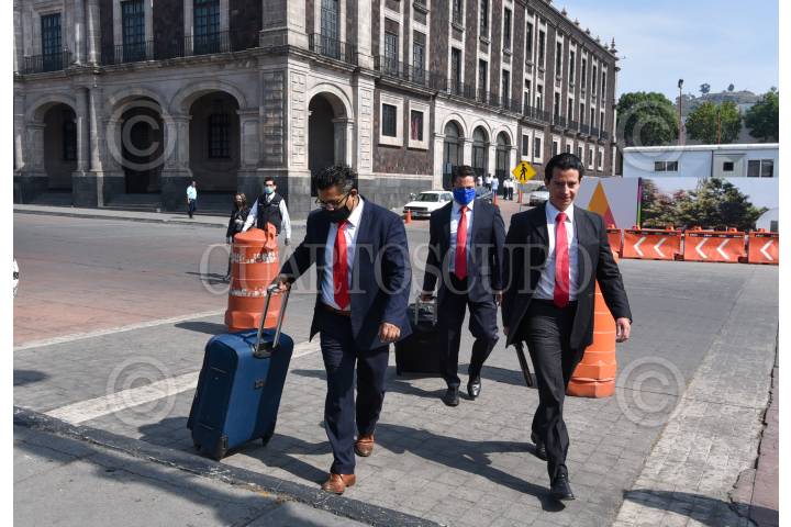 Rodrigo Jarque Lira, Secretario de Finanzas del Estado de México acudió a la Legislatura local a entregar la Cuenta Pública 2019, la cual se realizó a puerta cerrada como parte de las medidas preventivas por la contingencia por COVID-19. FOTO: CRISANTA ESPINOSA AGUILAR /CUARTOSCURO.COM