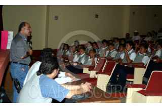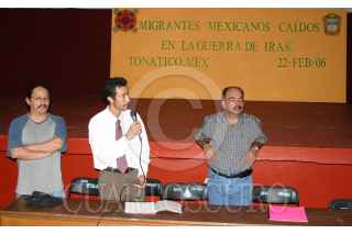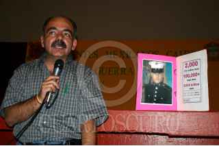 TONATICO, ESTADO DE MEXICO 23FEBERO2006.- Fernando Suàrez del Solar, integrante de la Organizaciòn no gubernamental Guerrero Azteca e integrantes del Comitè Mèxico contra la Guerra de Irak, se presentaron en el auditorio del Centro Cultural Tonatiuh. para ofrecer una conferencia a la comunidad en general, acerca de la advertencia para migrantes sobre el reclutamiento en el ejèrcito de Estados Unidos. FOTO: Maira Tulia Pèrez Bocanegra/CUARTOSCURO.COM