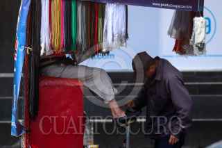 CIUDAD DE MÉXICO, 29ABRIL2020.- A pesar de no ser actividades esenciales, capitalinos continúan saliendo a laborar durante la fase 3 de contagio por Covid-19. El sector laboral que vive al día es uno de los predominantes en la sociedad mexicana. Se estima que tras la crisis generada por el Covid-19 dejaría hasta un 10.7% de desempleo, afirmo Jonathan Heat, subgobernador del Banco de México. En la imagen, un bolero trabajando en la Av. Juárez de la Ciudad de México. FOTO: GALO CAÑAS /CUARTOSCURO.COM