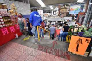 CHILPANCINGO, GUERRERO, 29ABRIL2020.- Para regular la entrada de las personas al mercado central de Chilpancingo "Baltazar R. Leyva Mancilla", se han restringido algunos accesos y se pide a los ciudadanos usar las escaleras como lo han marcado con aerosol, con la finalidad de mantener cierta distancia y evitar contagios por COVID-19. FOTO: DASSAEV TÉLLEZ ADAME/CUARTOSCURO.COM