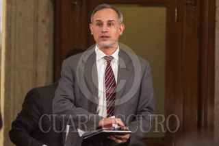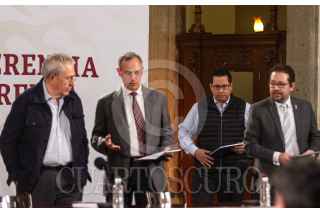 CIUDAD DE MÉXICO, 29ABRIL2020.- Jorge Alcocer Varela, secretario de Salud; José Luis Alomía, director General de Epidemiología; Hugo López-Gatell, subsecretario de Salud, y Ricardo Cortes Alcalá, titular General de Promoción de la Salud, encabezaron el informe diario sobre el avance la Pandemia COVID-19 (Coronavirus) en México. El acto se realizó en Palacio Nacional. FOTO: ANDREA MURCIA/CUARTOSCURO.COM