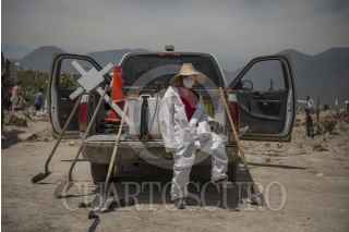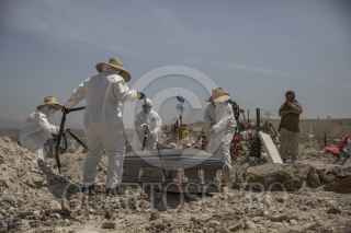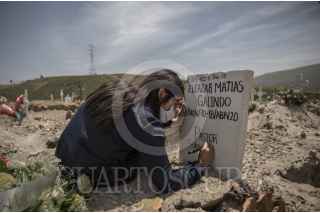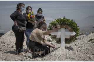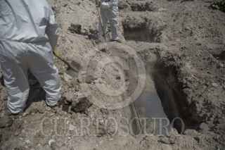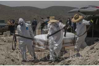 TIJUANA, BAJA CALIFORNIA, 29ABRIL2020.- En el panteón número 13 ubicado en Valle Redondo, continúan dandole el último adiós a personas fallecidas a causa de la pandemia del COVID-19. Trabajadores del panteón se apoyan con una retroexcabadora para agilizar el trabajo, esto ante la presencia de algunos familiares que son colocados a 50 metros de distancia debido a los protocolos de seguridad. La ciudad fronteriza de Tijuana es el municipio de México con más casos confirmados de Covid-19, con 510 positivos y 60 defunciones. FOTO: OMAR MARTÍNEZ /CUARTOSCURO.COM