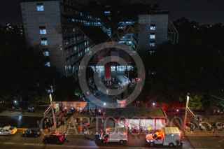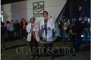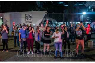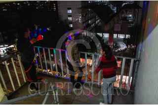 CIUDAD DE MÉXICO, 29ABRIL2020.- Vecinos del multifamiliar ubicado frente al Hospital 20 de noviembre, diariamente a las 21:30 horas salen a sus balcones a cantar al personal Médico que labora como agradecimiento a su trabajo durante la crisis sanitaria causada por el COVID-19 (Coronavirus). FOTO: ANDREA MURCIA /CUARTOSCURO.COM