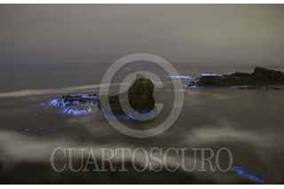 TIJUANA, BAJA CALIFORNIA, 29ABRIL2020.- La zona rocosa de Playas de Tijuana se iluminó de color fosforescente con el fenómeno natural de la bioluminiscencia, provocada por una reacción bioquímica de microalgas que emiten luz con el movimiento. FOTO: OMAR MARTÍNEZ /CUARTOSCURO.COM