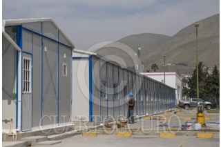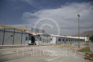 TIJUANA, BAJA CALIFORNIA, 30ABRIL2020.- Un hospital temporal que atenderá a pacientes no grabes contagiados de Covid-19 se construye a un costado de la Clínica Uno del Instituto Mexicano del Seguro Social (IMSS) ubicado en la Tercera Etapa Del Río Tijuana, esto ante la saturación de pacientes que se registra en nosocomios de la ciudad fronteriza. Se estima que el hospital ligero estará en funcionamiento 15 días. De acuerdo a información oficial, el Estado pondrá en función un total de tres hospitales temporales, dos en Tijuana y uno en Mexicali. FOTO: OMAR MARTÍNEZ /CUARTOSCURO.COM