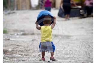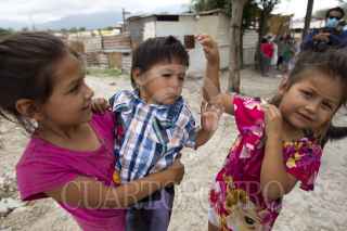 GUADALUPE, NUEVO LEÓN, 30ABRIL2020.- Niños de la comunidad "El Ranchito" en espera de que se acerquen personas para recibir un regalo en el día del niño. La comunidad alejada de las colonias se dedican a la recolección de basura en carretones y hasta el momento no han tomado ninguna medida preventiva para el contagio del coronavirus covid-19 y carecen de todo tipo de protección como tapabocas o gel antibacterial. FOTO: GABRIELA PÉREZ MONTIEL / CUARTOSCURO.COM