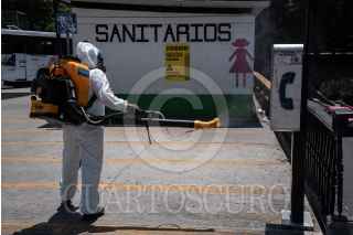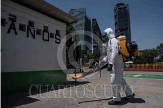 CIUDAD DE MÉXICO, 30ABRIL2020.- Trabajadores realizan proceso de sanitización en uno de los accesos del metro Chapultepec, para prevenir la propagación de coronavirus (covid-19). FOTO: MARIO JASSO /CUARTOSCURO.COM