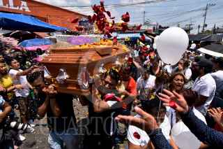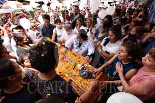 CHILPANCINGO, GUERRERO, 30ABRIL2020.- Entre lágrimas, porras, aplausos, música y a pasear de la contingencia sanitaria por Covid-19, decenas de personas despidieron al líder de la Unión de Comerciantes de Chilpancingo (UNICH), Gabriel Alejandro Marino Salgado, quien fuera asesinado la noche del pasado martes cuando salía de su comercio, en la central de abastos de la capital del estado de Guerrero "Baltazar R. Leyva Mancilla", y se dirigía a su hogar. Sus familiares hicieron un llamado a las autoridades para esclarecer el asesinato de este comerciante. FOTO: DASSAEV HERNÁNDEZ /CUARTOSCURO.COM