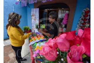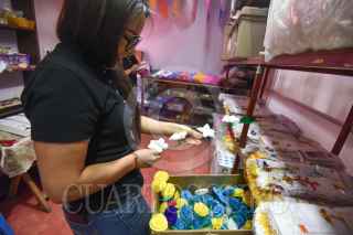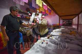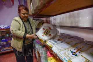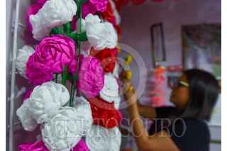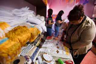 La familia Morán Alcantara lleva más de 25 años dedicándose a la elaboración de flores de papel y plástico, sábanas bordadas, pegadas con aplicaciones o deshiladas, que sirven para vestir las cruces para la celebración católica de la Santa Cruz que se realiza el próximo 3 de Mayo, ante la contingencia por COVID-19 no pueden instalarse como cada año en el mercado de temporada, y para que su trabajo que inician en el mes de Enero no se quede y tengan grandes pérdidas económicas han optado por crear un catálogo y subirlo en redes sociales, y poder llevarlo a domicilio, operan en las delegaciones de San a Buenaventura, Capultitlán en Toluca, y en el municipio de Metepec; la entrega de los artículos van con todas las medidas sanitarias desde el empaquetado de las flores y las sábanas hasta la entrega. FOTO: CRISANTA ESPINOSA AGUILAR /CUARTOSCURO.COM