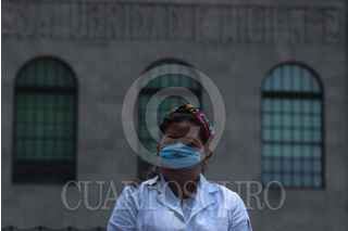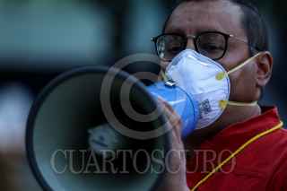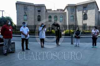 CIUDAD DE MÉXICO, 01MAYO2020.- Representantes del sector salud se manifestaron frente a la Secretaría de Salud Federal para expresar su descontento ante el manejo de recursos, información y contratación de médicos durante la actual emergencia por Covid-19. Hasta el momento, 19, 224 casos se han confirmado, así como 1,859 fallecimientos. FOTO: GALO CAÑAS /CUARTOSCURO.COM