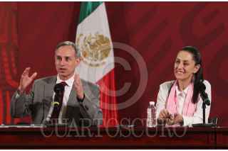 CIUDAD DE MEXICO 01MAYO2020.- Hugo López-Gatell, Subsecretario de Salud, Claudia Sheinbaum, jefa de gobierno, José Luis Alomía Zegarra, director general de Epidemiología y Zoe Robledo, director del Instituto Mexicano de Seguro Social, durante la conferencia de prensa en donde se informó de 5 zonas del país donde existe alta transmisión por el tamaño poblacional esta lista es encabezada por la Ciudad de México y Baja California . ROGELIO MORALES /CUARTOSCURO.COM