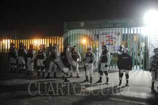 Ecatepec, Estado de México, 02 mayo 2020. Elementos de la Guardia Nacional resguardan el hospital Las Américas, en donde el día de ayer se registró un amotinamiento de familiares de internos y fallecidos en este nosocomio, por COVID-19. Foto: Luis Carbayo/cuartoscuro.com
