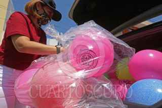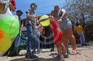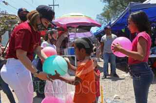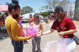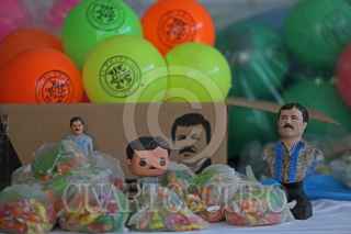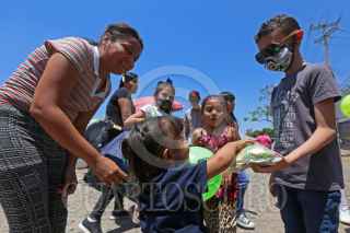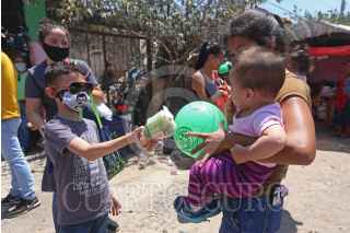 GUADALAJARA, JALISCO, 02MAYO2020.- A causa de la cuarentena que se vive por la contingencia sanitaria del Coronavirus (Covid-19), personal del la marca “El Chapo 701”, a través de la fundación Alejandrina Guzmán, hija del narcotraficante Joaquín El Chapo Guzmán, realizaron entrega de pelotas y bolos a niños de colonias de escasos recursos como parte de la festividad del día del niño. FOTO: FERNANDO CARRANZA GARCIA CUARTOSCURO.COM