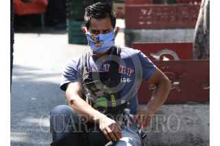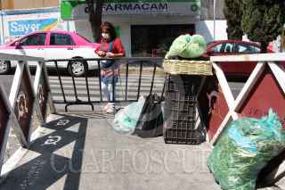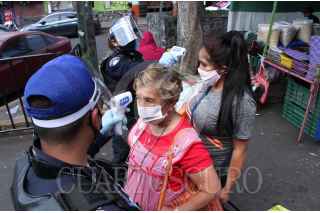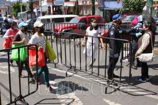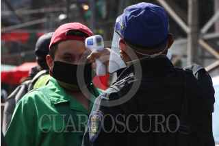 CIUDAD DE MEXICO 02MAYO2020.- Uso obligatorio de cubrebocas, acceso a sólo una persona por familia, restricción de entrada a menores y toma de temperatura, son las medidas que autoridades de la alcaldia Magdalena Contreras ponen en acción para limitar el acceso al tianguis ubicado en Avenida Luis Cabrera, esto con el objetivo de evitar la propagación de COVID-19, durante la Fase 3 de la emergencia sanitaria por dicho virus. ROGELIO MORALES /CUARTOSCURO.COM