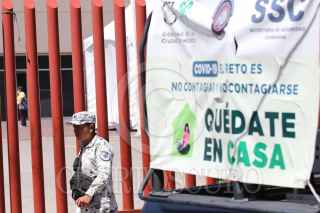 CIUDAD DE MÉXICO, 03MAYO2020.- Elementos de la Guardia Nacional vigilaron las inmediaciones del Hospital de Especialidades Belisario Domínguez, el cual recibe a pacientes con Covid-19. Las autoridades continúan recomendando a la población de quedarse en casa para no propagar más el virus durante la Fase 3 de la Emergencia Sanitaria Nacional por la pandemia del Coronavirus. FOTO: GRACIELA LÓPEZ /CUARTOSCURO.COM