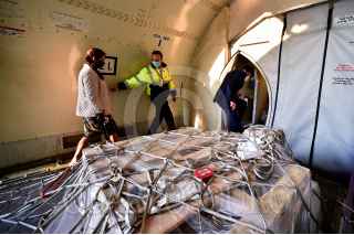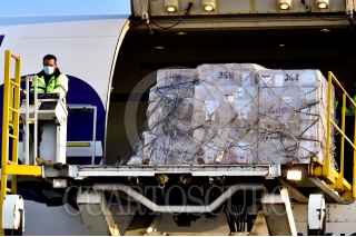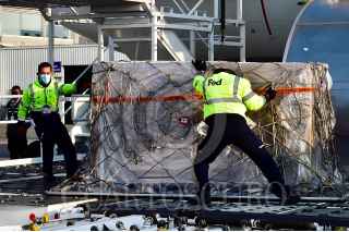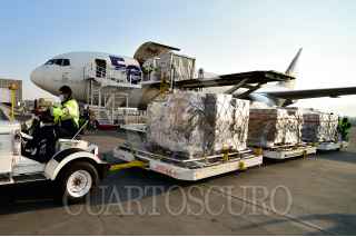 TOLUCA, ESTADO DE MÉXICO. 05MAYO2020.- Un avión con insumos médicos, procedente de Estados Unidos de América, arribo al aeropuerto de la capital Mexiquense. El Gobierno Federal, recibieron los ventiladores que México adquirió al país vecino del Norte, para atender a pacientes que lo necesitan. Los ventiladores marca Hamilton, que son hechos en Suiza. FOTO: PRESIDENCIA/CUARTOSCURO.COM
