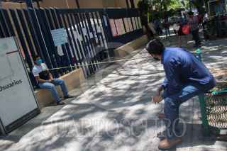 CIUDAD DE MÉXICO, 05MAYO2020.- El Hospital Rubén Leñero de la Secretaría de Salud de la Ciudad de México fue anunciado por la Jefa de Gobierno el día de ayer para recibir pacientes con Covid-19, esto ante la saturación de otros hospitales. A los visitantes que ingresan al nosocomio les miden la temperatura para asegurarse de que no tengan síntomas de Coronavirus. En el área de urgencias esperan familiares de personas que llegaron con síntomas de la enfermedad, algunas de ellas señalan que tardan mucho en darles informes de sus pacientes, en esta misma zona llegan las carrozas fúnebres con personal protegido con trajes especiales para trasladar a los difuntos. Personal de la secretaría de Salud instaló un módulo de informe para familiares cuyos paciente ingresaron por Covid-19. FOTO: MOISÉS PABLO/CUARTOSCURO.COM