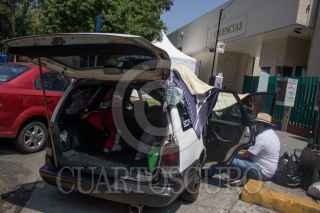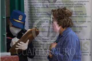 CIUDAD DE MÉXICO, 06MAYO2020.- El Hospital Rubén Leñero continúa recibiendo pacientes con síntomas de Covid-19, algunos llegan por su cuenta y otros son trasladados en ambulancias, ayer por la tarde el gobierno federal anunció que el 8 de Mayo será el día en donde se registren más contagios. Cerca de las 11 de la mañana los familiares pudieron comunicarse con sus pacientes vía remota, muchos de ellos les escribieron mensajes en papeles o las botellas de agua que les hicieron llegar con el personal médico. FOTO: MOISÉS PABLO/CUARTOSCURO.COM