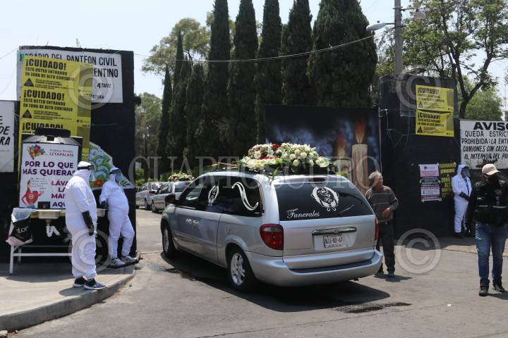 CIUDAD DE MÉXICO, 06MAYO2020.- En las inmediaciones del Panteón San Nicolás Tolentino colocaron una manta anunciando que sólo estará abierto a servicios funerarios debido a la contingencia por la pandemia del Coronavirus. Así mismo el 8 y 9 permanecerá cerrado para evitar el contagio del Covid-19. Las familias y funerarias continúan arribando al cementerio para dar el último adiós a sus seres queridos. El acceso para entierro es de 15 personas, 5 si es cremación y 1 si es para caso de Coronavirus. FOTO: GRACIELA LÓPEZ /CUARTOSCURO.COM