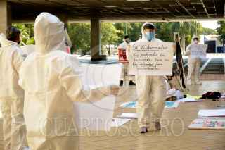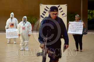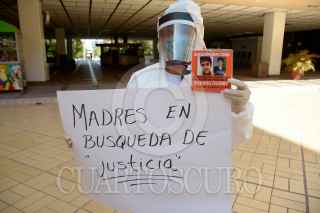 CULIACÁN, SINALOA, 06MAYO2020.- Madres con hijos desaparecidos en Sinaloa exigieron al gobierno del estado reactive la búsqueda de personas en la entidad. Las mujeres que integran el colectivo de búsqueda “Sabuesos Guerreras” denunciaron que pese a la pandemia del Covid-19, las desapariciones continúan en Sinaloa. Las madres iniciaron una jornada de protestas en México para presionar a los gobiernos estatales para que no detengan la búsqueda de los desaparecidos. Portando pancartas, fotos de sus hijos desaparecidos y los trajes que usan en las búsquedas, las mujeres se apostaron en el patio central de Palacio de Gobierno. FOTO: JUAN CARLOS CRUZ/CUARTOSCURO.COM