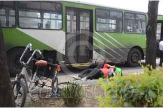 CIUDAD DE MÉXICO, 07MAYO2020.- Un hombre fue atropellado cuando viajaba en su bicicleta por un camión del RTP mientras circulaba en Eje Central y Héctor Berliboz de la colonia Peralvillo. El ciclista, resultó con lesiones menores. FOTO: ARMANDO MONROY /CUARTOSCURO.COM