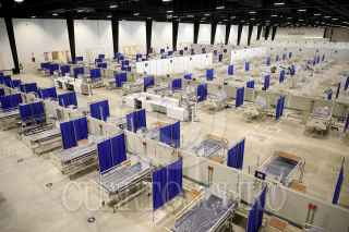 MÉRIDA, YUCATÁN, 07MAYO2020.- El Centro de Convenciones y Exposiciones Yucatán Siglo XXI se encuentra listo para funcionar como hospital temporal y exclusivo para personas con Coronavirus. Este hospital temporal contará con 52 camas con tomas de oxígeno para pacientes que requieran cuidados críticos, 123 camas para cuidados intermedios y 315 para cuidados mínimos que estarán puestas a disposición para responder oportunamente en caso de que la contingencia se extendiera por más tiempo y el número de contagios llegara a sobrepasar al límite de la capacidad hospitalaria del estado. FOTO: FRANCISCO BALDERAS /CUARTOSCURO.COM