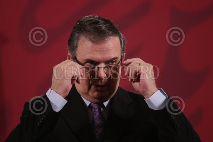 CIUDAD DE MÉXICO, 08MAYO2020.- Andrés Manuel López Obrador, presidente de México, y Marcelo Ebrard, secretario de Relaciones Exteriores, encabezaron la conferencia mañanera para anunciar la aprobación del acuerdo propuesto ante el G20 con respecto a la no acaparación de la posible vacuna para combatir el Covid-19. La propuesta fue respalda por 161 países lo que la convierte en la iniciativa con mayor apoyo para el país. FOTO: GALO CAÑAS /CUARTOSCURO.COM