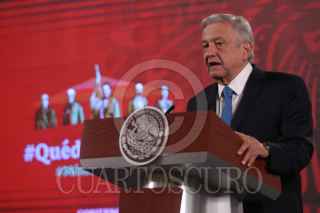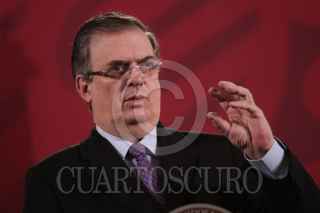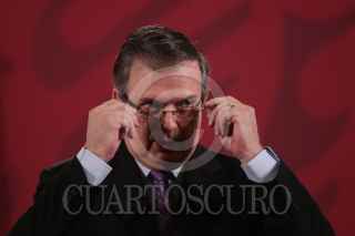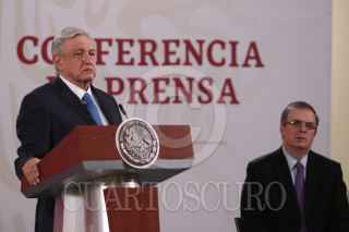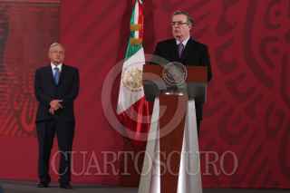 CIUDAD DE MÉXICO, 08MAYO2020.- Andrés Manuel López Obrador, presidente de México, y Marcelo Ebrard, secretario de Relaciones Exteriores, encabezaron la conferencia mañanera para anunciar la aprobación del acuerdo propuesto ante el G20 con respecto a la no acaparación de la posible vacuna para combatir el Covid-19. La propuesta fue respalda por 161 países lo que la convierte en la iniciativa con mayor apoyo para el país. FOTO: GALO CAÑAS /CUARTOSCURO.COM