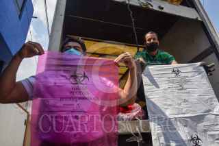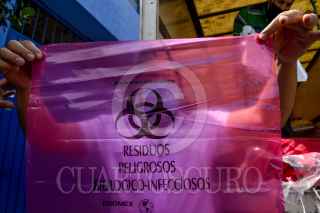 La empresa Ruboplast realizará la donación de un millón de bolsas rojas para la separación de residuos biológicos- infecciosos peligrosos al sector salud, y bolsas blancas reciclables para residuos sanitarios, estas serán entregadas a los ayuntamientos y a la población para que puedan separar sus residuos y los recolectores de basura no ponga en peligro su salud. FOTO: CRISANTA ESPINOSA AGUILAR /CUARTOSCURO.COM
