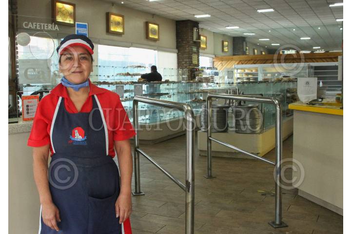 CIUDAD DE MEXICO 09MAYO2020.- María Susana Silva, tiene 43 años y trabaja como supervisora de tienda y personal en la panadería: "Panmex". Entró a la empresa como empacadora de pan y ahora tiene a su cargo un aproximado de 30 personas entre choferes panaderos y empacadoras; desempeña labores como el de la limpieza de la tienda, atención de pedidos a otras empresas y los cortes de caja. Con casi media vida en esta panadería Susana inició a trabajar por la necesidad de sacar adelante a sus hijos, menciona que pocas veces ha descansado el Día de las Madres y en el contexto actual en el que se vive una emergencia sanitaria por el virus COVID-19 que ha bajado las ventas casi en un 40 % en el consumo de la panadería en la que trabaja, Susana no piensa que parar labores, ya que siendo madre soltera es necesario ver por el bien de sus hijos. ROGELIO MORALES /CUARTOSCURO.COM